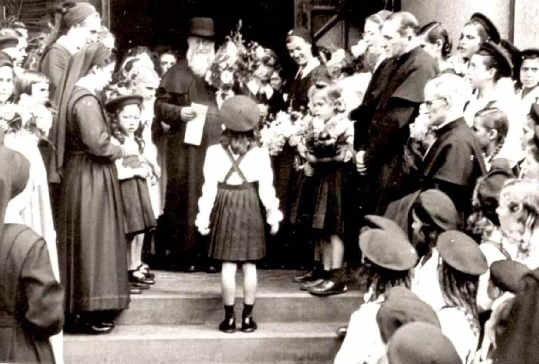 A fotografia registra a visita do padre Kentenich ao Colégio Mãe de Deus, em 1947. O padre teve um papel importante na construção dessa história.