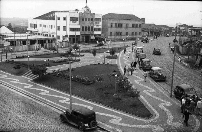 A praça hoje Willie Davids, é o ponto central dessa modernidade incipiente. Os canteiros bem desenhados, as luminárias elegantes e, sobretudo, a calçada de pedras portuguesas em desenho sinuoso indicam mais que gosto estético: mostram um projeto em curso. Ali, o urbanismo dialoga com os ideais da cidade-jardim, moldados à imagem e semelhança dos planos britânicos da Companhia de Terras Norte do Paraná. Cada curva no calçamento revela uma curva no tempo: uma cidade que flui, que se embeleza para se afirmar.