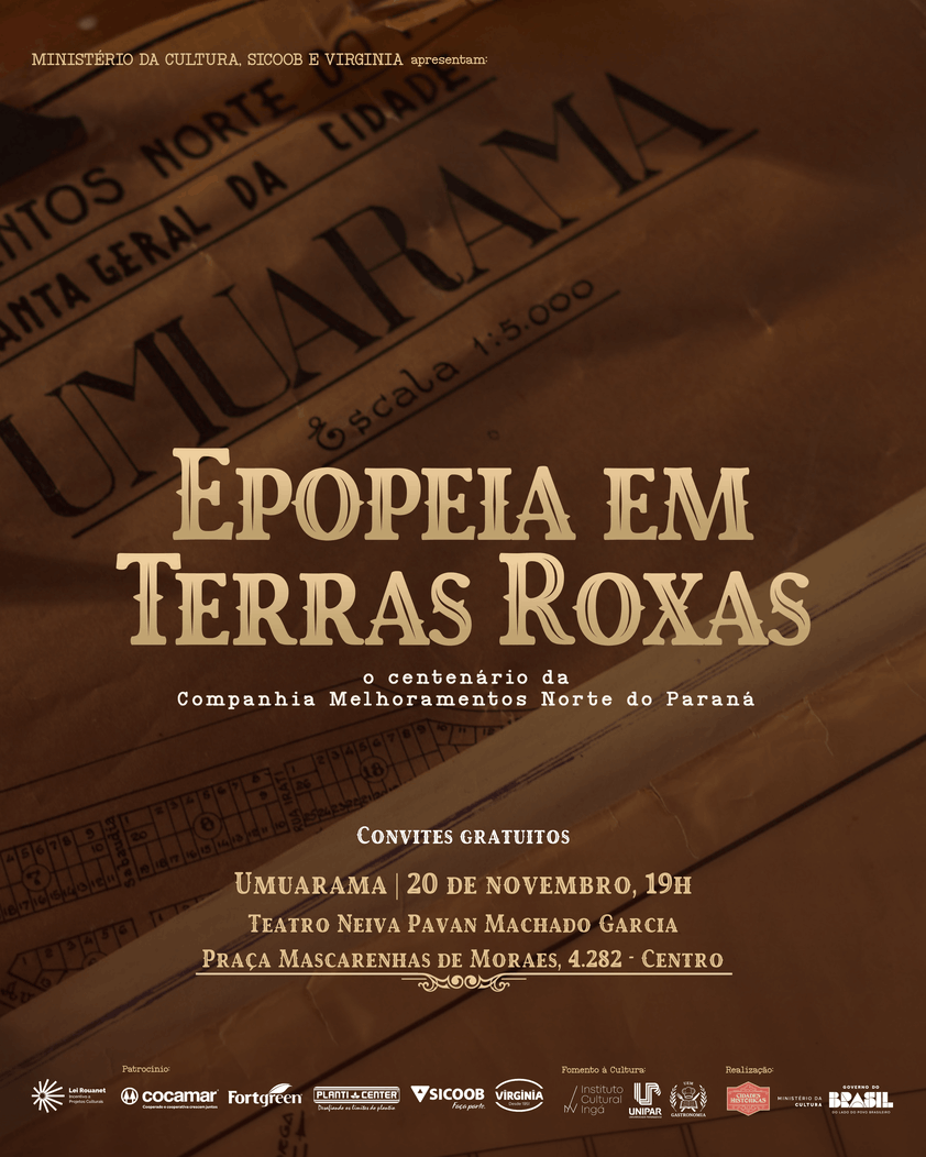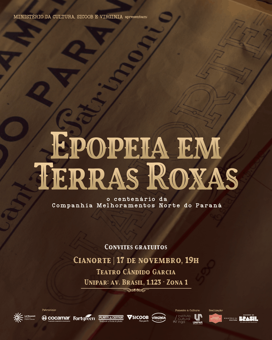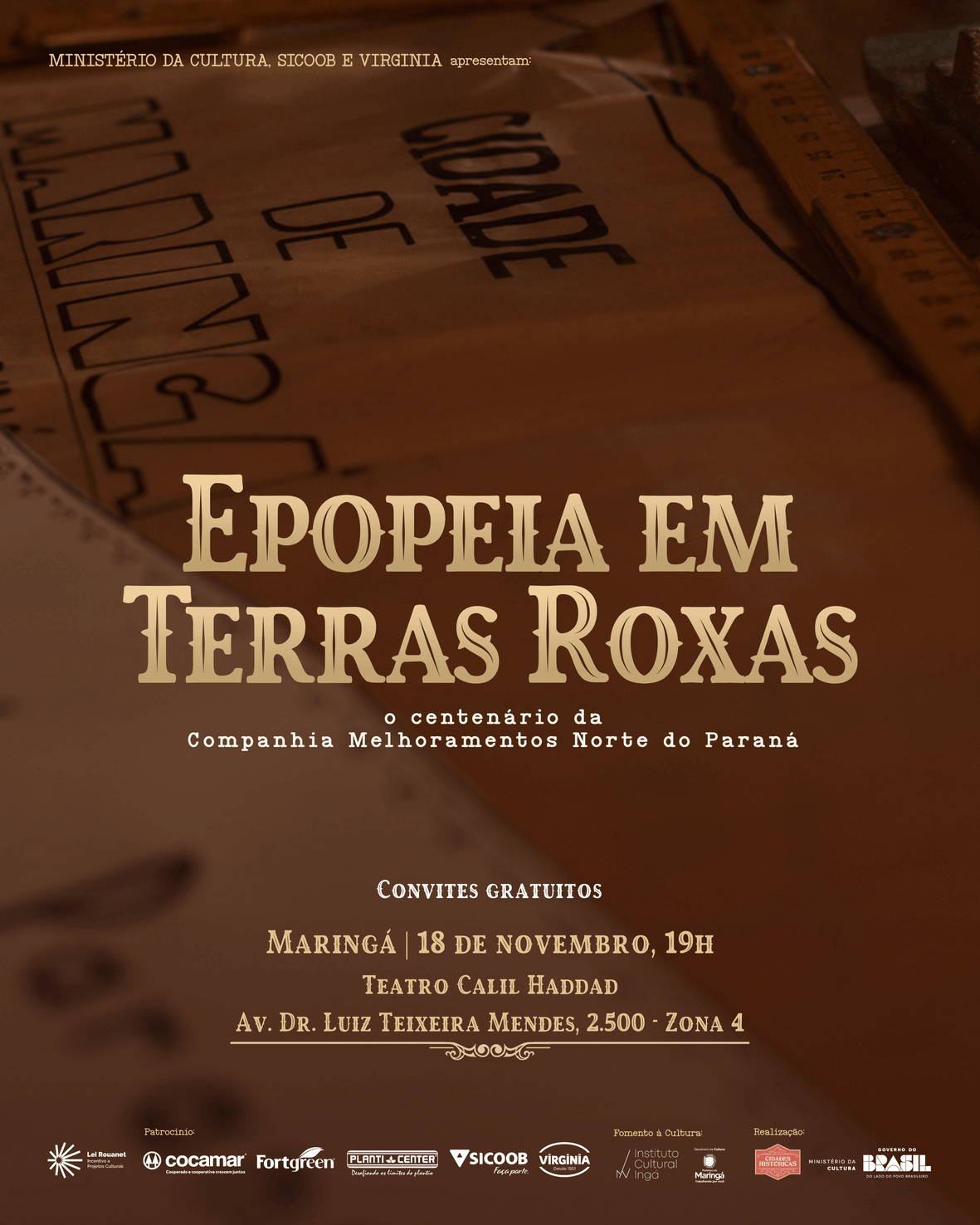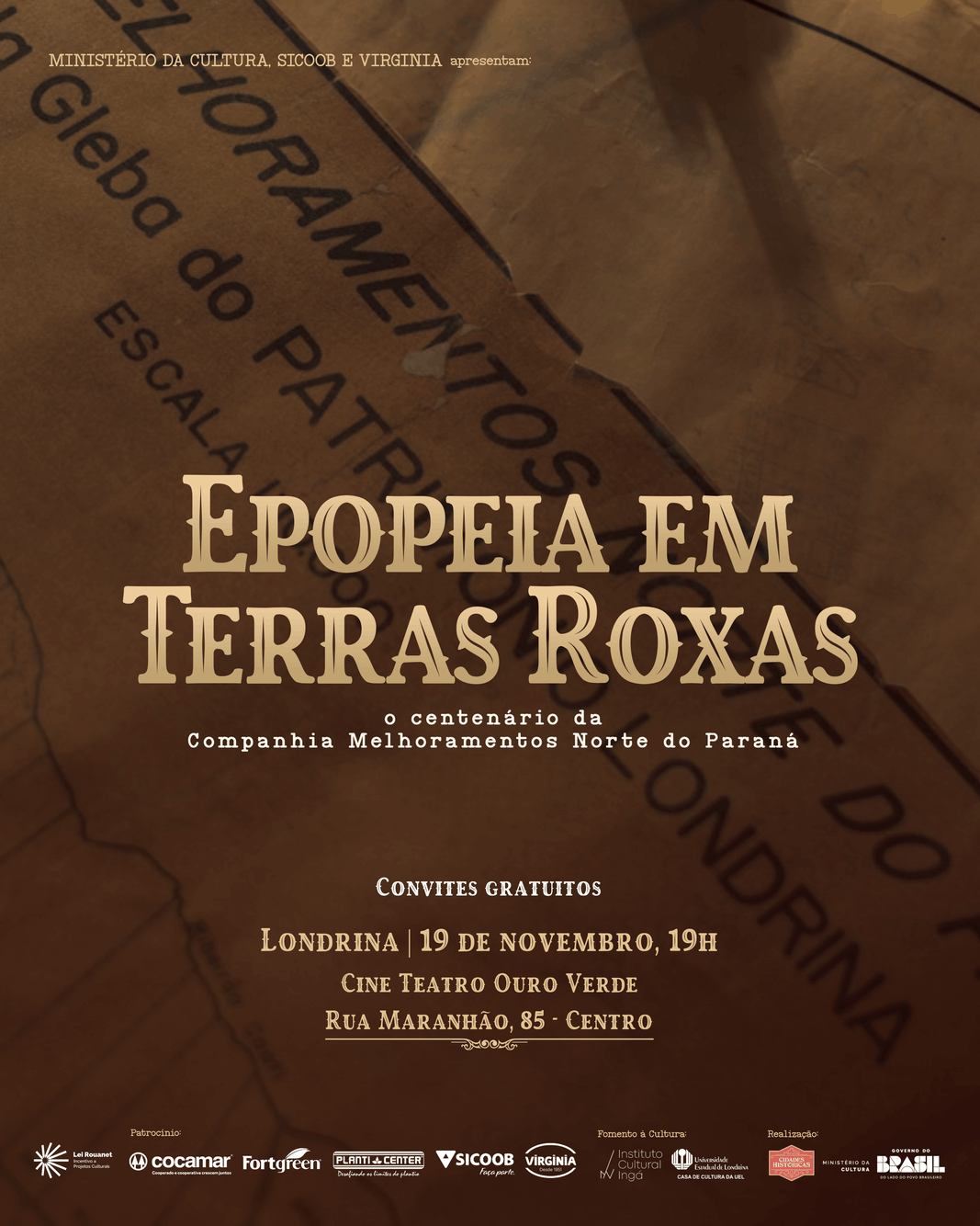 “Epopeia em terras roxas: o centenário da Companhia Melhoramentos Norte do Paraná” terá pré-estreias em Londrina, Maringá, Cianorte e Umuarama a partir do dia 17 de novembro, com entradas gratuitas. A reserva de convites já está disponível e pode ser feita neste link.