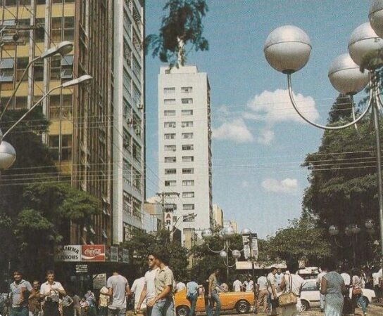 A foto mostra o Calçadão de Londrina, cenário de filmes londrinenses.