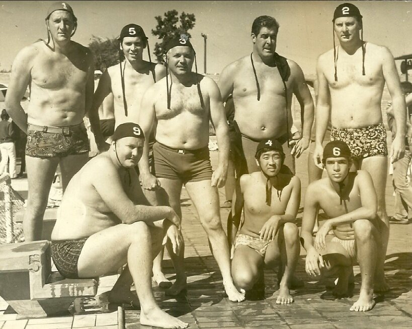 Na imagem, nomes que marcaram época: Milton Roehrig, Gilberto D'Avila, Ralf Muller, Vicente Januzzi Neto, Julio Roehrig, Horst e Claudio Ogawa. Nas publicações pesquisadas, o atleta que veste a camisa número 6 não está identificado. Formavam um grupo dedicado aos treinos, que viveu finais de semana em disputas acirradas, carregando o orgulho de representar o clube e a cidade de Londrina nas águas em muitos campeonatos.